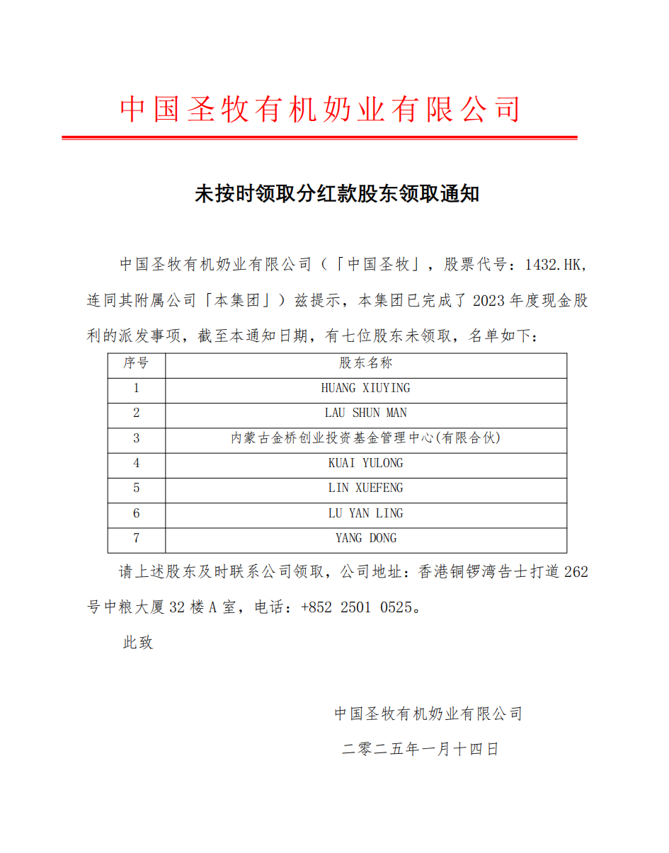 未按時(shí)領(lǐng)取分紅款股東領(lǐng)取通知